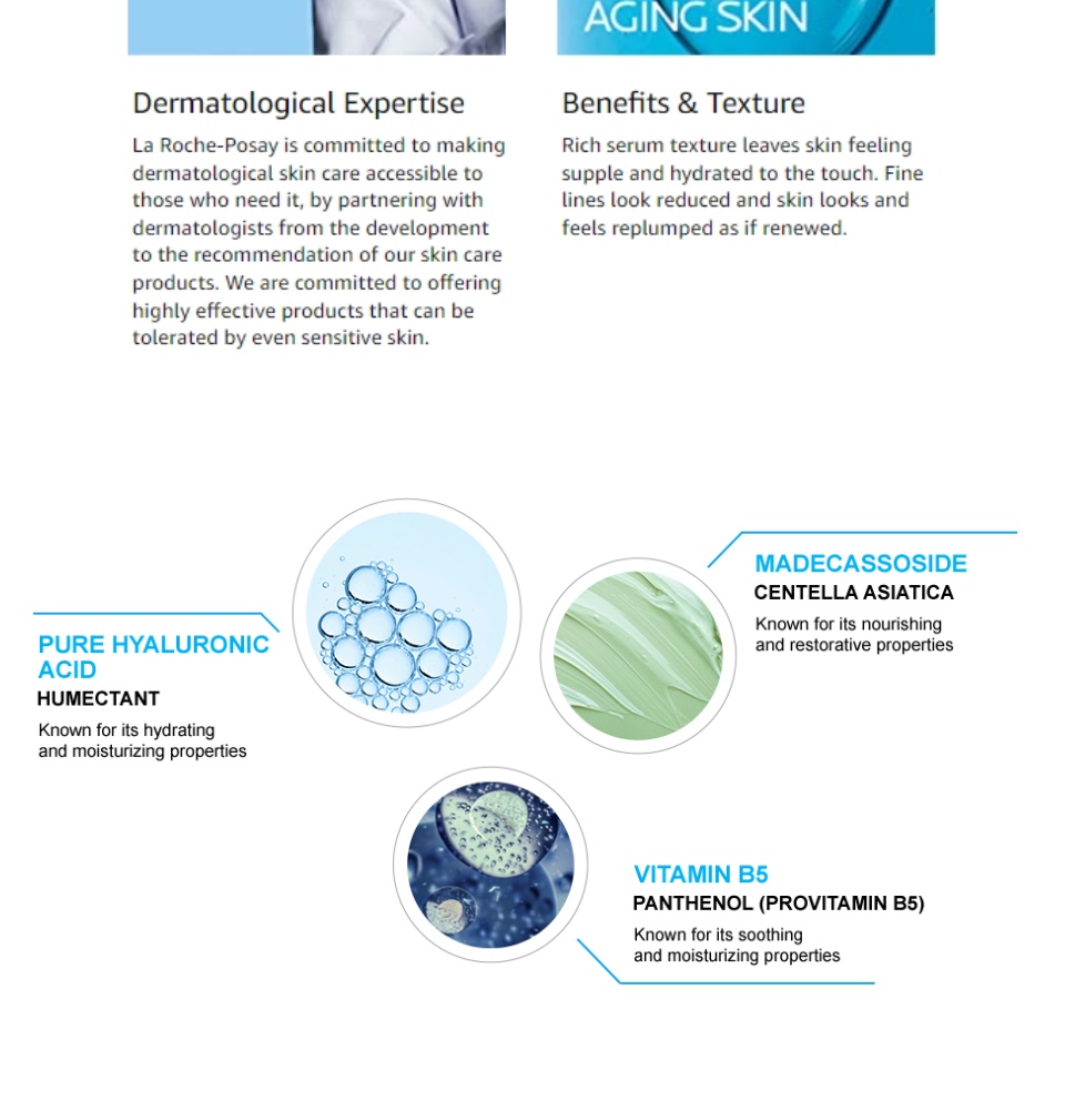 ผสมผสานกรดไฮยาลูโรนิกบริสุทธิ์เข้มข้น มาเดคาสโซไซด์และวิตามิน B5 เพื่อประสิทธิภาพสูงสุดในขณะเดียวกันก็เหมาะสำหรับผิวบอบบาง