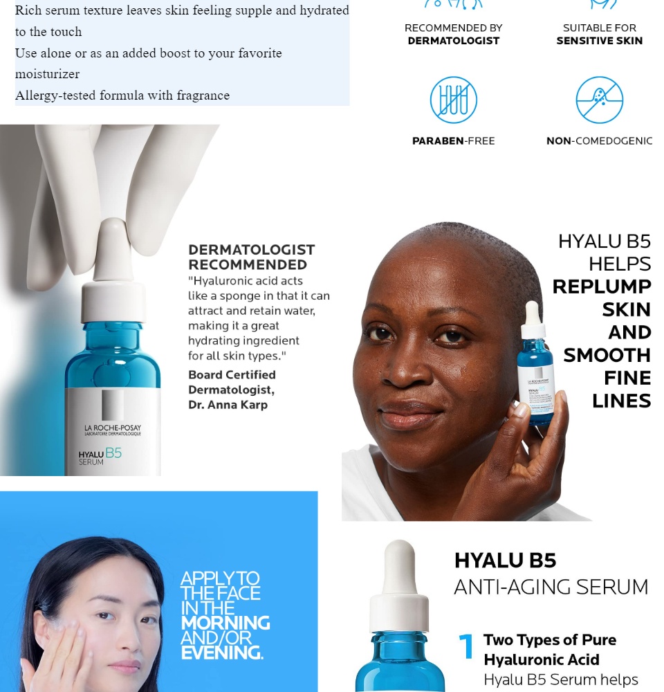 กรดไฮยาลูโรนิกทำหน้าที่เหมือนฟองน้ำที่สามารถดึงดูดและกักเก็บน้ำ ทำให้เป็นส่วนผสมที่ให้ความชุ่มชื่นที่ดีเยี่ยมสำหรับทุกสภาพผิว